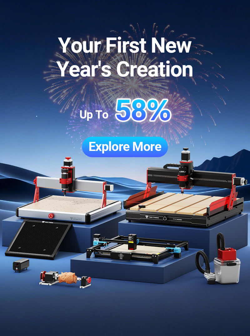 modules for total material flexibility.The Diode laser engraves wood, leather, acrylic, stone, paper, glass and stainless steel, while the Infrared laser cuts all metals and plastics. This dual-laser system transforms your Twotrees machine into the ultimate CNC router and laser engraver hybrid for professional workshops.