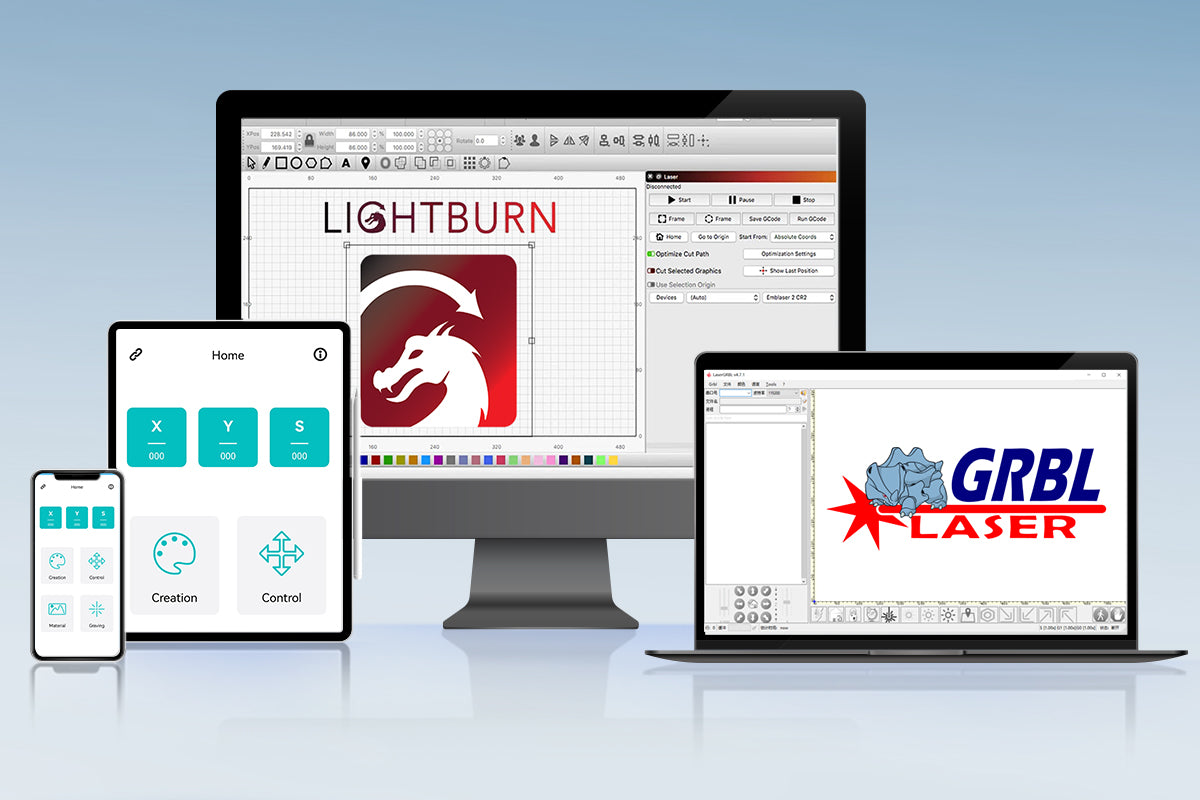 LaserGRBL and LightBurn software.
